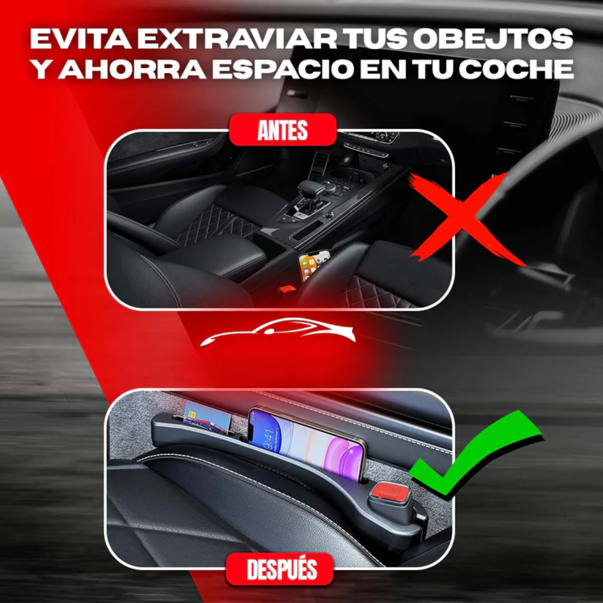 ¡Nuestro AutoSide Kit x2 – Organizador Lateral con Porta Celular es la solución práctica y elegante que estabas esperando! Mantén tus pertenencias siempre al alcance y tu coche impecablemente organizado.
