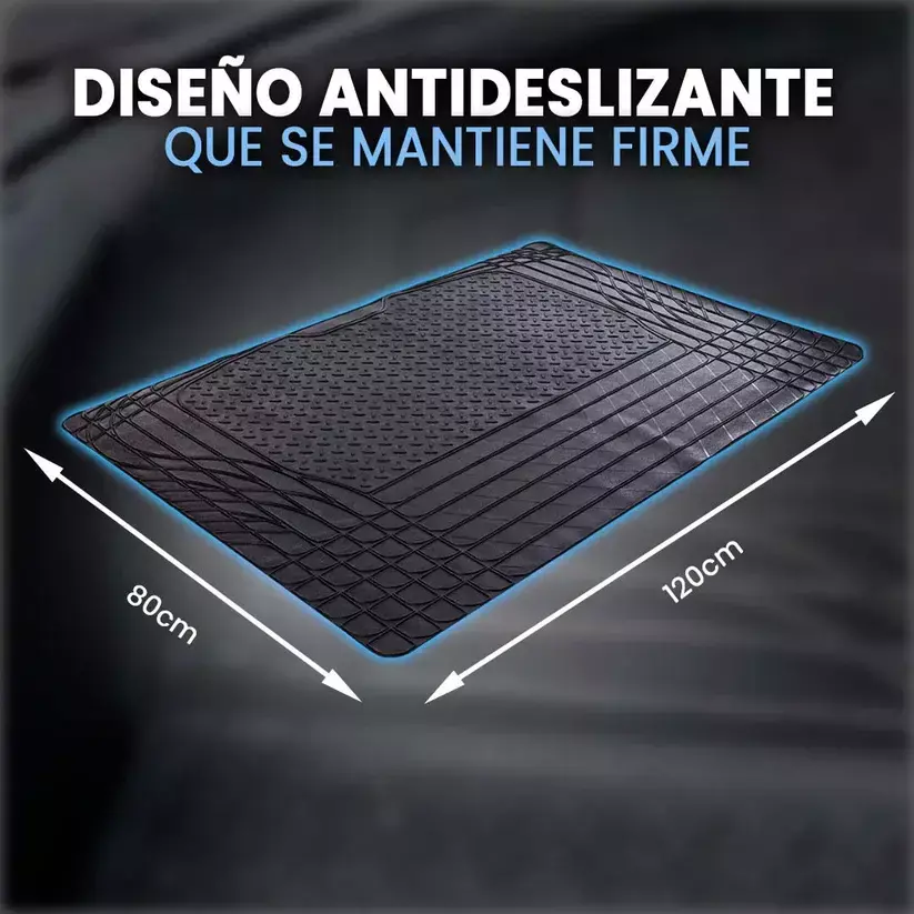 Fabricado en PVC flexible y resistente, se adapta fácilmente al tamaño de tu baúl gracias a su diseño recortable. Ideal para autos, camionetas o SUV.